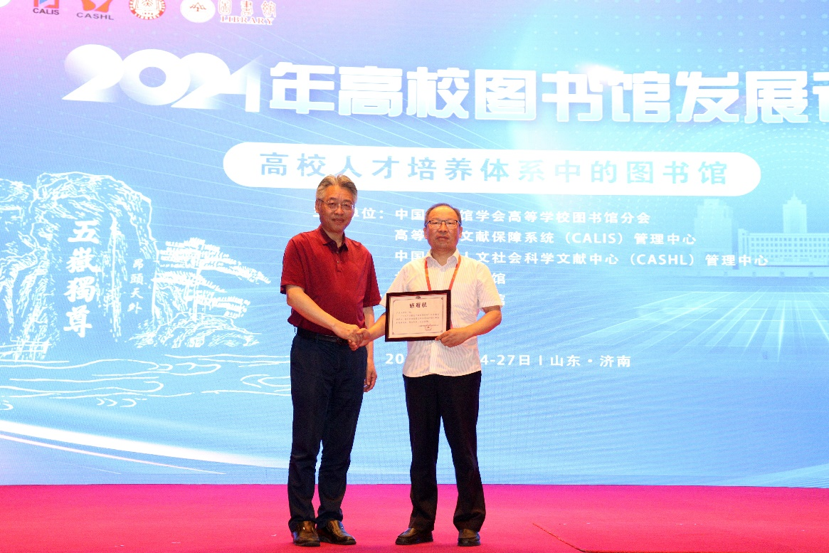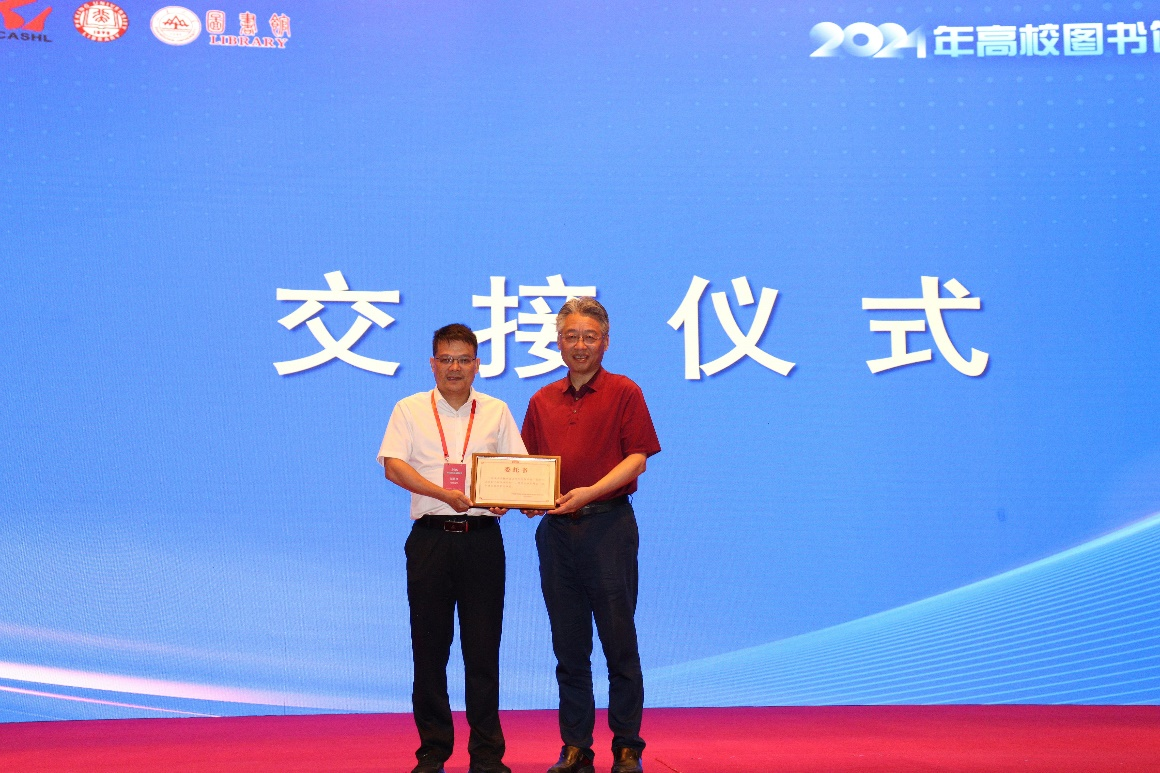 会议最后,陈建龙为承办方代表山东大学图书馆馆长赵兴胜颁发感谢状,向下一届论坛承办方代表南昌大学图书馆馆长邹锦良颁发委托书,并宣布2024年高校图书馆发展论坛圆满结束。至此,本次论坛圆满落下帷幕。