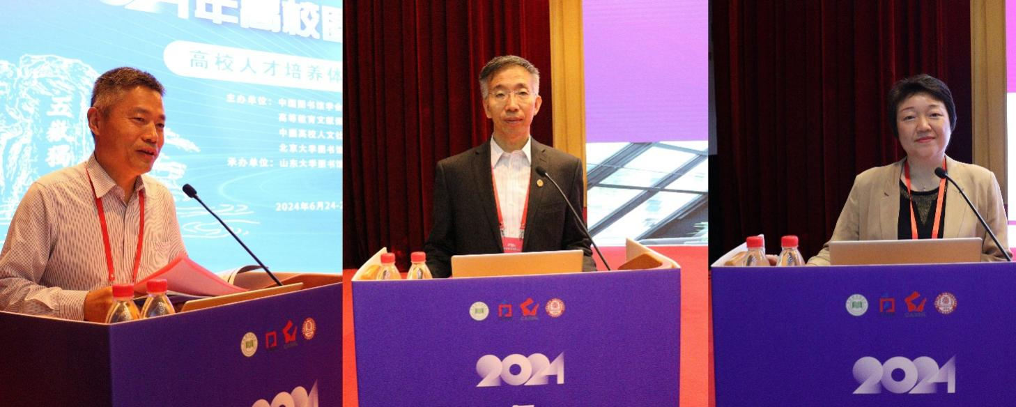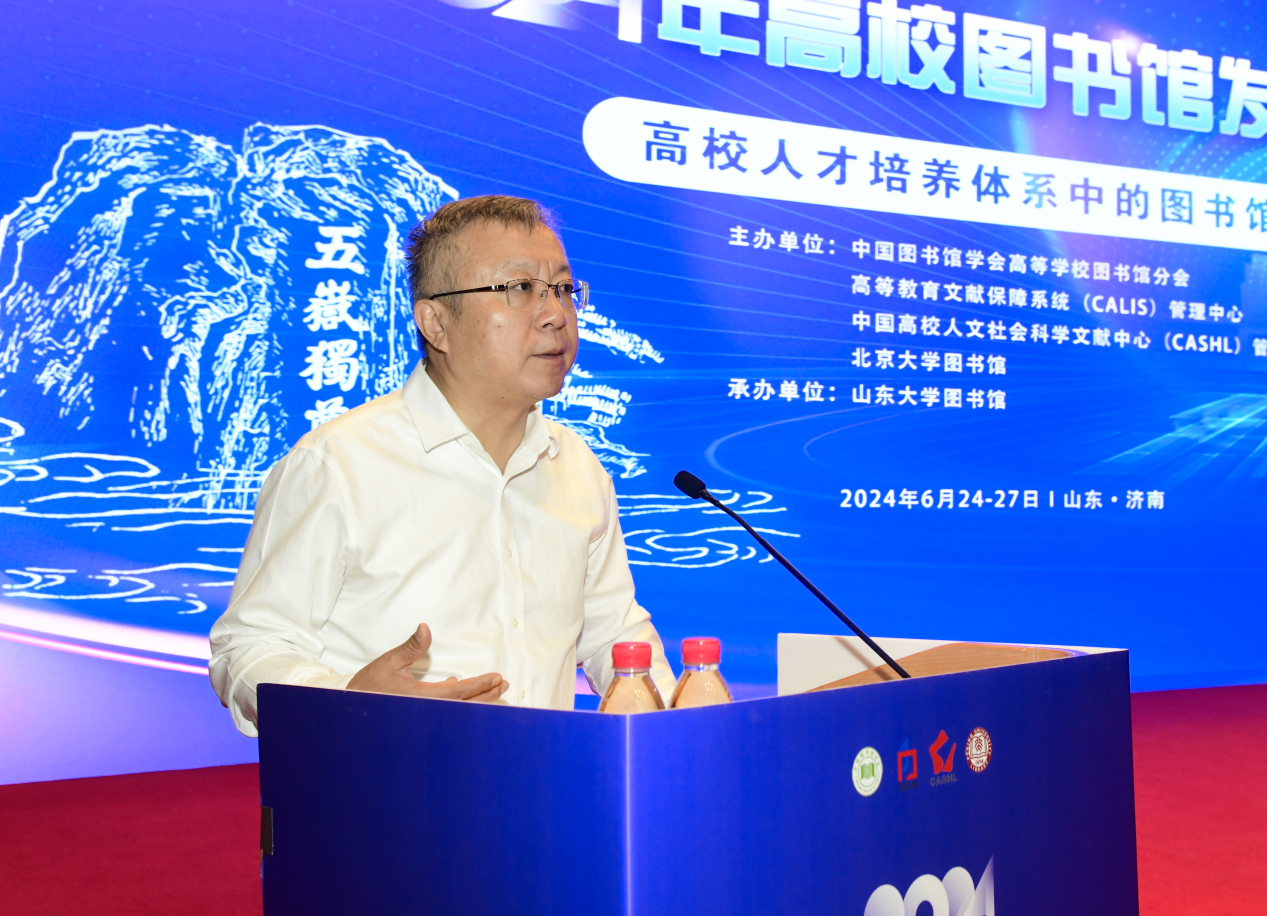 6月25-26日,由中国图书馆学会高等学校图书馆分会、高等教育文献保障系统(CALIS)管理中心、中国高校人文社会科学文献中心(CASHL)管理中心、北京大学图书馆联合主办,山东大学图书馆承办的2024年高校图书馆发展论坛在济南举行,山东大学党委书记任友群,山东省教育厅总督学王浩,中国图书馆学会副理事长/高校分会主任委员、北京大学图书馆馆长陈建龙出席开幕式并致辞,山东大学党委常委桑晓旻主持开幕式。本次论坛以“高校人才培养体系中的图书馆”为主题,围绕高校图书馆战略规划、管理理念和信息素质教育、资源建设创新、阅读生态创新等专题设置主论坛、分论坛和圆桌会谈。共有中国图书馆学会高校分会委员,CALIS、CASHL中心馆/成员馆馆长,以及业界学界专家学者、馆员代表等400余人参加。