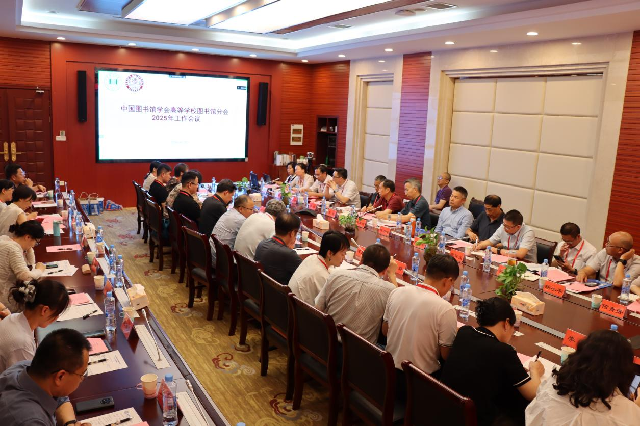 2025年6月25日晚,中国图书馆学会高等学校图书馆分会(简称“高校分会”)2025年工作会议在南昌召开。会议由高校分会和北京大学图书馆主办,南昌大学图书馆承办。会议由高校分会副主任委员、清华大学图书馆金兼斌馆长主持,高校分会主任委员、北京大学图书馆馆长陈建龙通过线上方式致辞,高校分会秘书长、北京大学图书馆副馆长姚晓霞做工作报告。高校分会副主任委员侯力强、贾明、魏群义、臧国全、张斌及来自全国高校图书馆的委员和代表共42人参会。