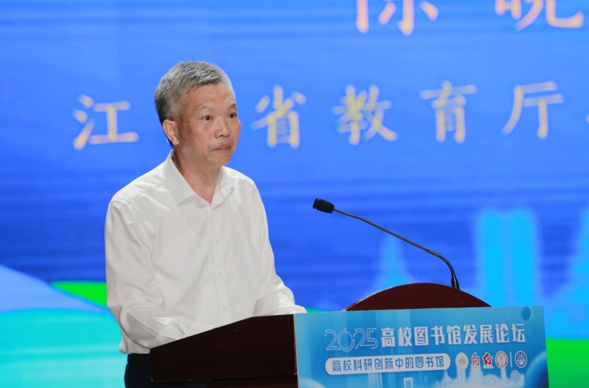 陈晓通代表江西省委教育工委、省教育厅对论坛顺利举办表达祝贺,并指出高校图书馆正加速向科研支撑的“智慧中枢”、学科交叉的“融合平台”、学术生态的“培育土壤”转型,希望各高校图书馆以论坛为契机,共同探索新时代高校图书馆服务科研创新的新路径。