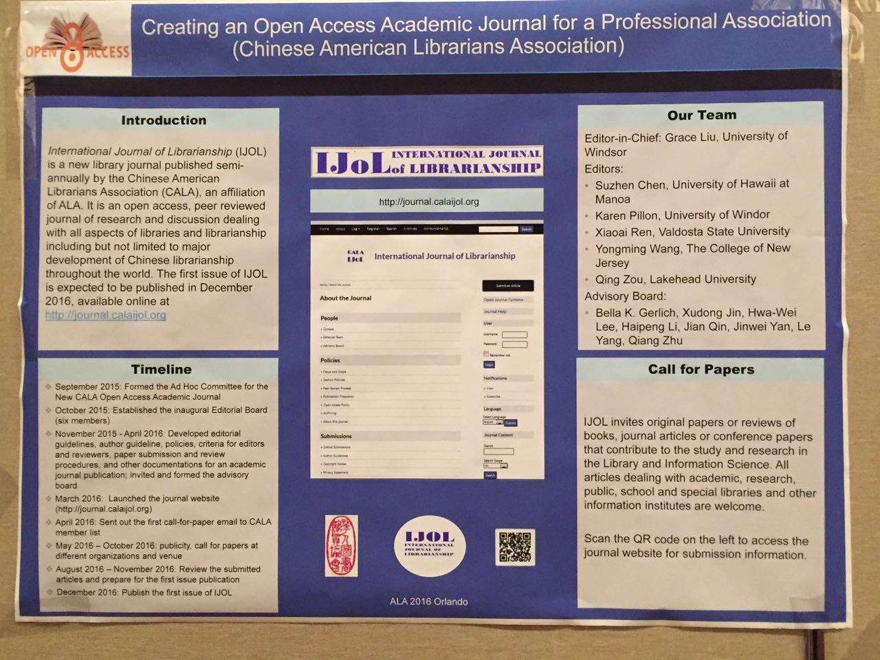 IJOL的建刊目标是为CALA会员和其他在北美,中国和全球其他地区的华人图书馆员提供一个发表学术见解与成果的重要渠道。IJOL发表关于图书馆,图书馆学和信息管理学等各个方面的研究与探讨。电子期刊全文可以在本刊网站获取,纸本期刊可以按需印刷邮寄。